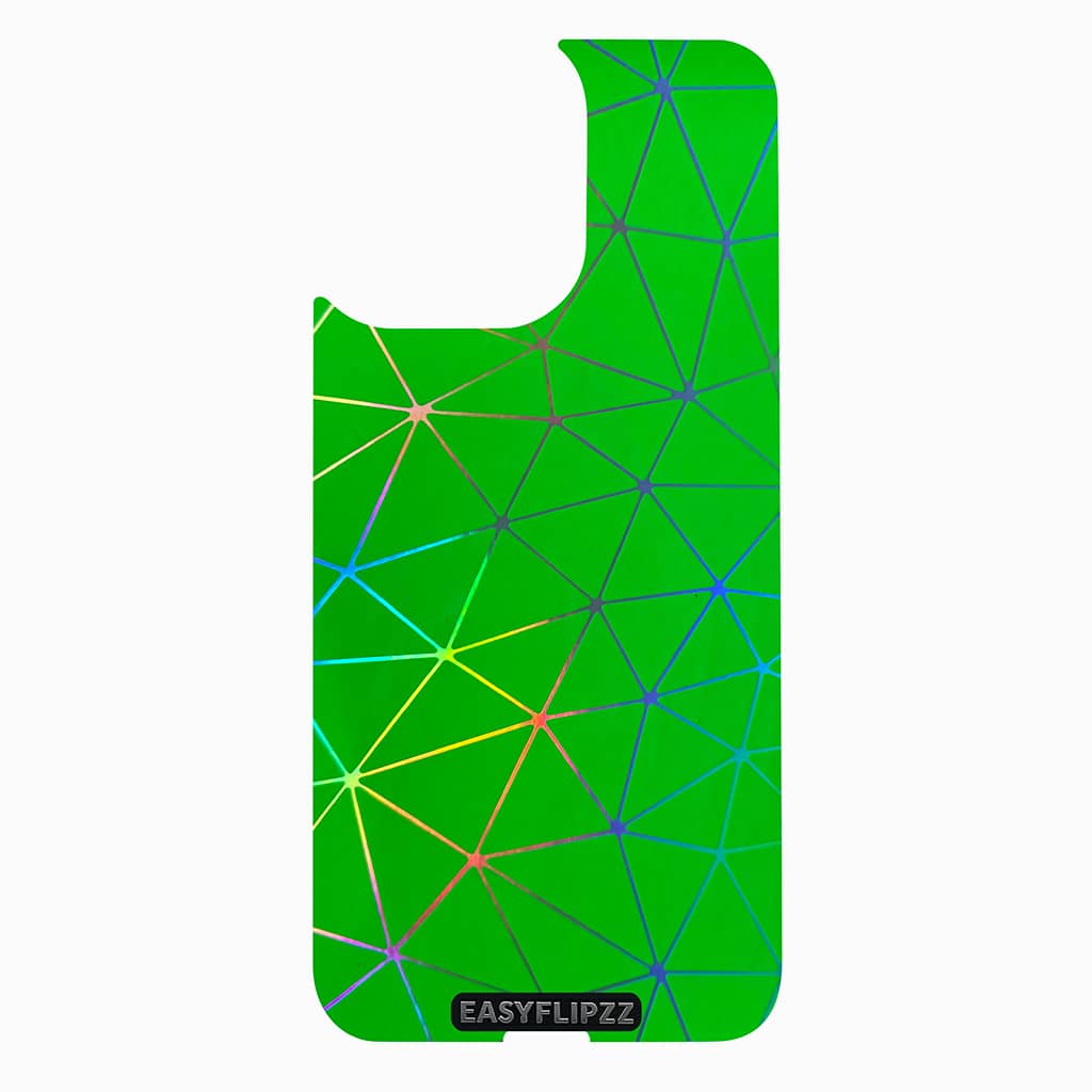 Backflipzz 01 GH Holo Green geeft je iPhone een frisse en futuristische look.Licht, dynamisch en eenvoudig te wisselen met de EasyFlipzz Chameleon Pro.