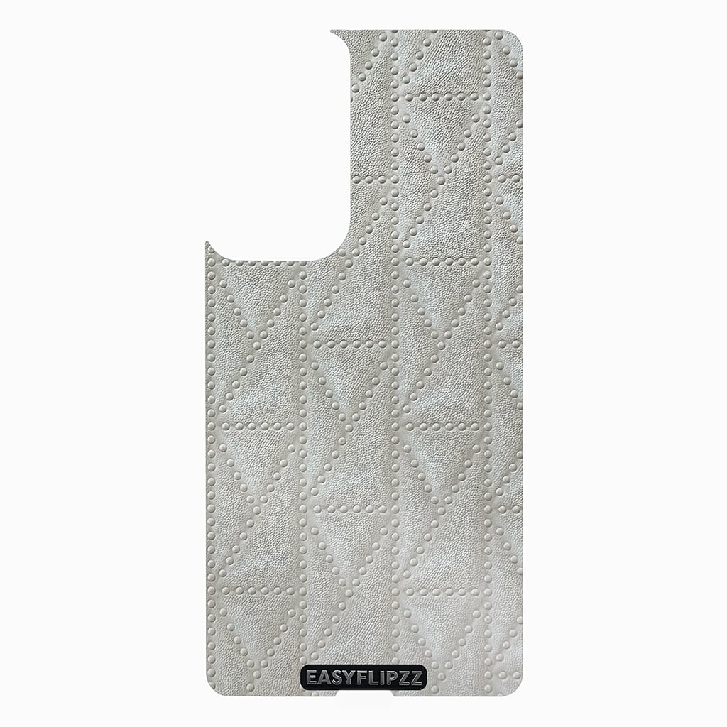 Backflipzz 03 GD Beige Dimension voor Samsung A & S brengt ingetogen luxe met beige vinyl en verfijnd 3D-reliëf. Magnetisch verwisselbaar en zorgvuldig afgewerkt voor jouw Chameleon Pro.