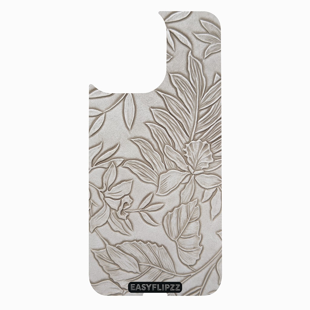 Met de Backflipzz Champagne Blossom wissel je in een handomdraai de look van je EasyFlipzz Chameleon Pro telefoonhoesje. Deze losse Backflipzz uit de Goldflipzz Patterned-Collectie combineert een zachte champagnetint met een stijlvol bloemreliëf – een elegante en luxueuze uitstraling voor jouw iPhone.
